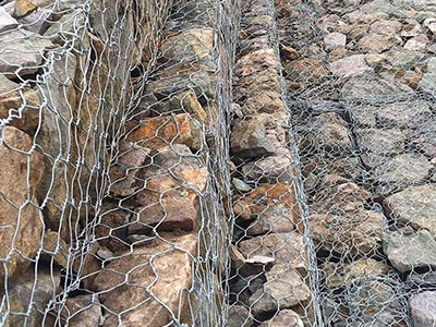 石籠網由具有延展性的鋼絲或者包覆PVC的以上鋼絲使用機械編織而成,使用該網制作而成的箱型結構就是石籠網箱。根據ASTM和EN標準,所使用的鋼絲直徑根據工程設計要求而不同。一般介于2.0-4.0mm之間,石籠網鋼絲的抗拉強度不少于38kg/m2,金屬鍍層重量一般高于245g/m2,石籠網片的邊緣線直徑一般要大于網線直徑。其雙線絞合部分的長度不得小于50mm.以保證絞合部分鋼絲的金屬鍍層和PVC鍍層不受破壞。